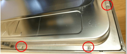 odstráňte vonkajšie dvere odskrutkovaním 6 skrutiek (3 vľavo a 3 vpravo)