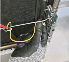 Odpojte uzemňovací vodič. Odklopte tyč závesu. Odstráňte dvere