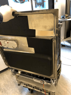 Odskrutkujte 6 skrutiek (3 ľavé a 3 pravé) a odpojte všetky konektory a zväzok káblov od zásuviek. Pred odstránením odstráňte hornú časť dverí, kde je ovládací panel.