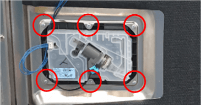 Pred odstránením dávkovača pracieho prostriedku odstráňte 6 upevňovacích skrutiek a odpojte všetky prípojky a zväzok káblov od zásuviek.
