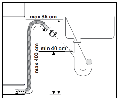 - Dĺžka vypúšťacej hadice nepresahuje 400 cm.